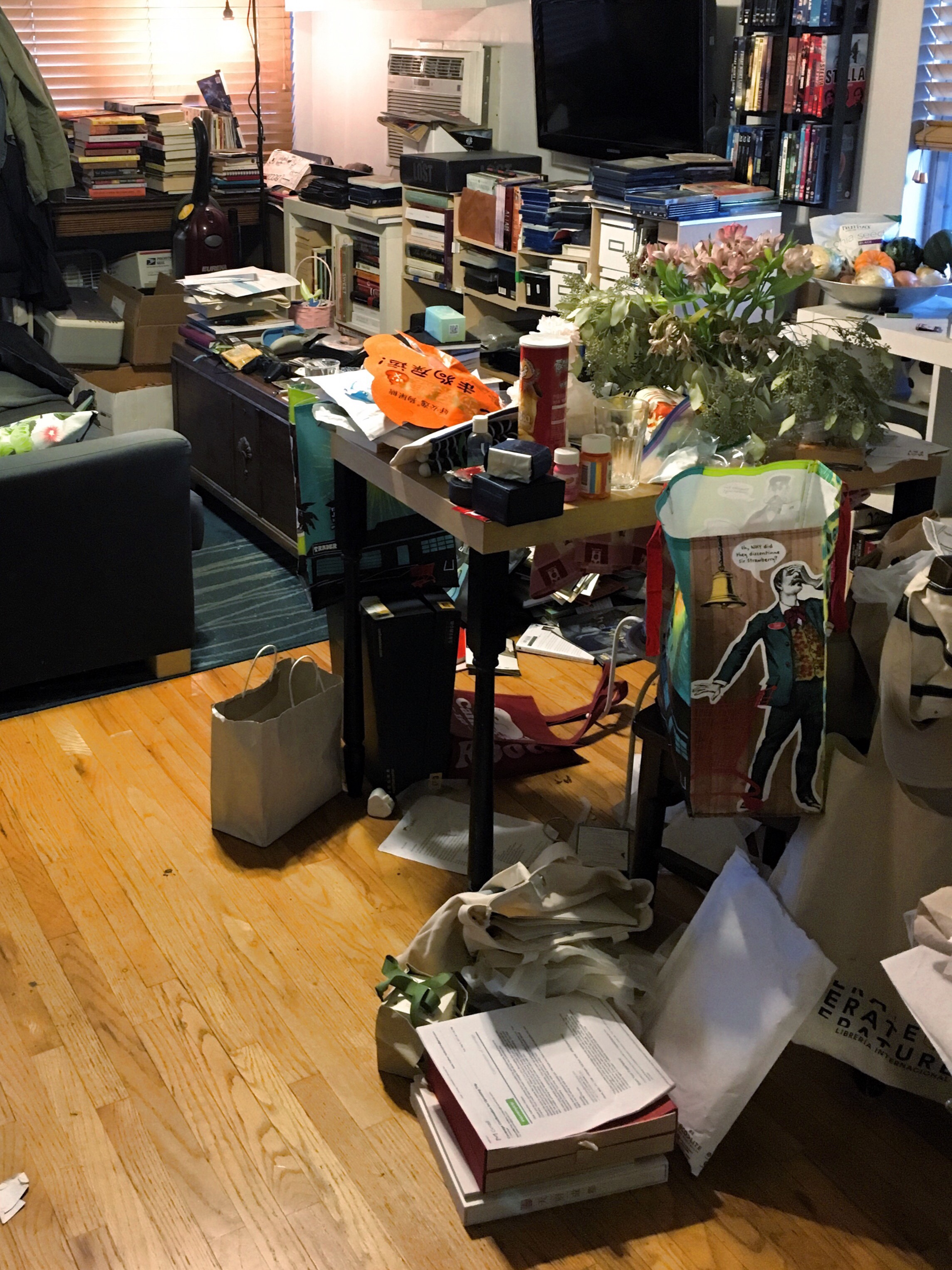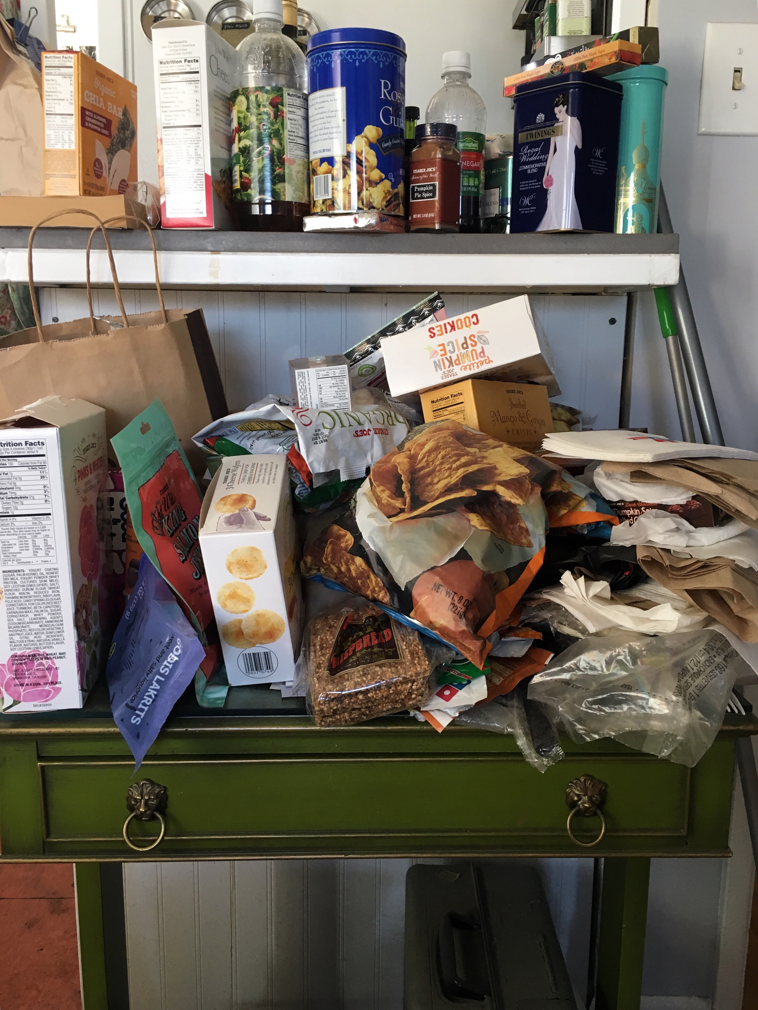 I’d like to have both surfaces clear, or in the case of the snack table, organized, by the end of the weekend. It seems like a small goal, but I’m aiming to set goals I can achieve, and not frustrate myself. I think that’s the only way I can get where I want to go.