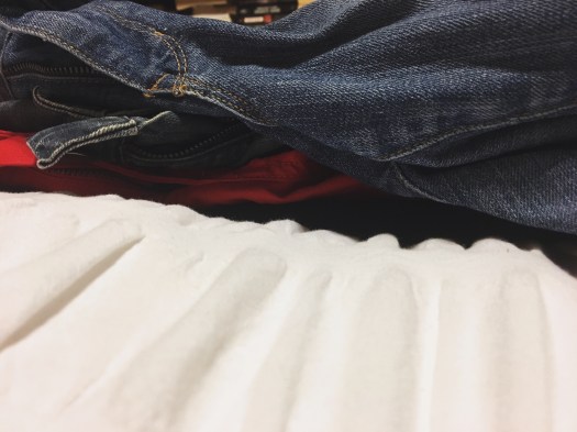 Today’s assignment was to clean out a drawer. I don’t have a junk drawer (there are only four drawers in my kitchen and they all have a purpose), so I thought about what would be most useful. I got some new jeans for Christmas and needed to get them to fit into the drawer space I had. That led to me tackling the drawer that’s home to my pants and a few sweaters.